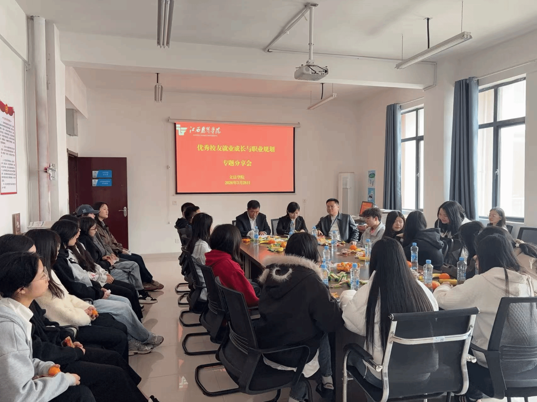 为深化就业育人实效,搭建校友与母校的联动桥梁,引导学生树立正确的职业观与就业观,科学规划职业生涯,3月28日上午10:30,文法学院在科技楼402举办优秀校友就业成长与职业规划专题分享会。文法学院班子成员出席活动,2023级、2024级学生代表到场聆听学习。