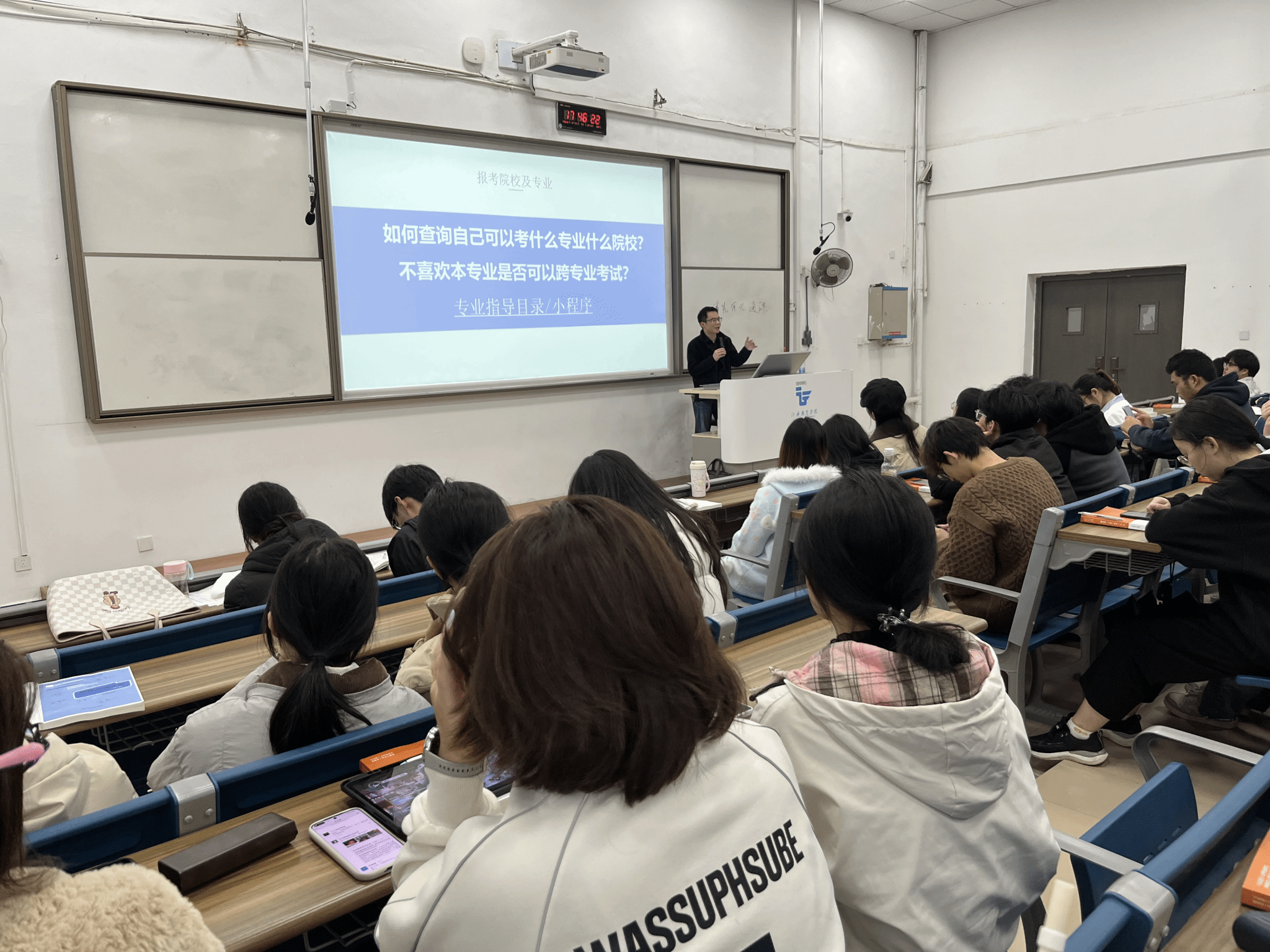 宣讲会上,何老师结合江西省最新专升本招生政策,围绕报考条件、报名流程、考试科目、志愿填报、录取规则等关键内容进行细致解读,重点针对法律类专业招生院校、历年分数线、专业对口方向等学生关心的问题逐一讲解。同时,结合法律事务专业特点,详细分析了专升本对提升学历层次、拓宽就业渠道、增强职业竞争力的重要意义,引导同学们立足专业实际,合理制定备考计划。